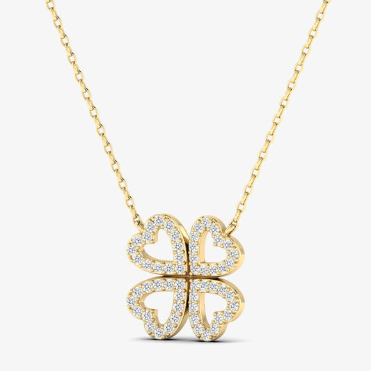 14K Gold Four Heart Clover Diamond Necklace