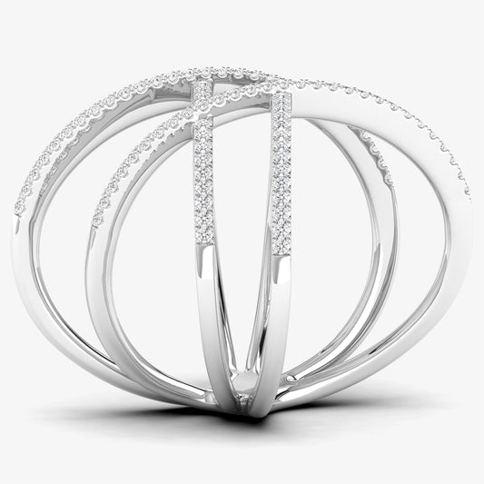 14K Layered Woven Tripe X Diamond Ring