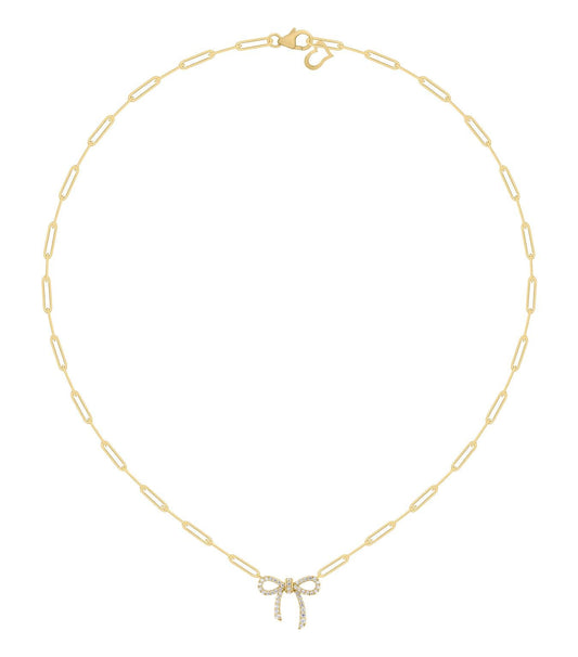 14K Paperclip Bow Ribbon Dainty Necklace
