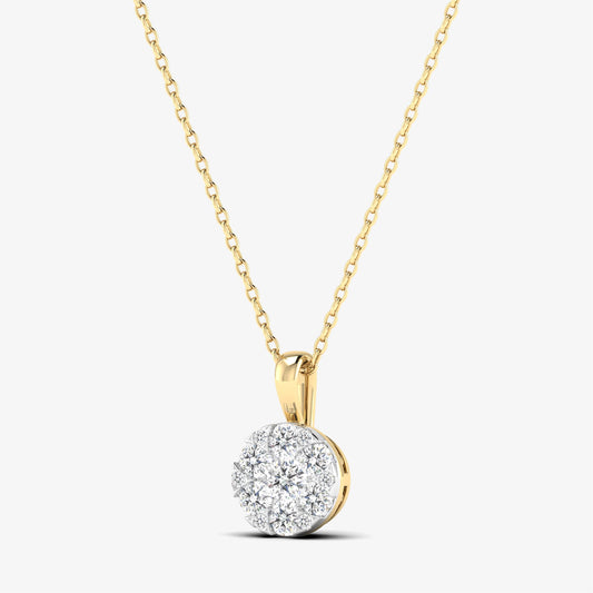 14K Round Halo Diamond Cluster Pendant