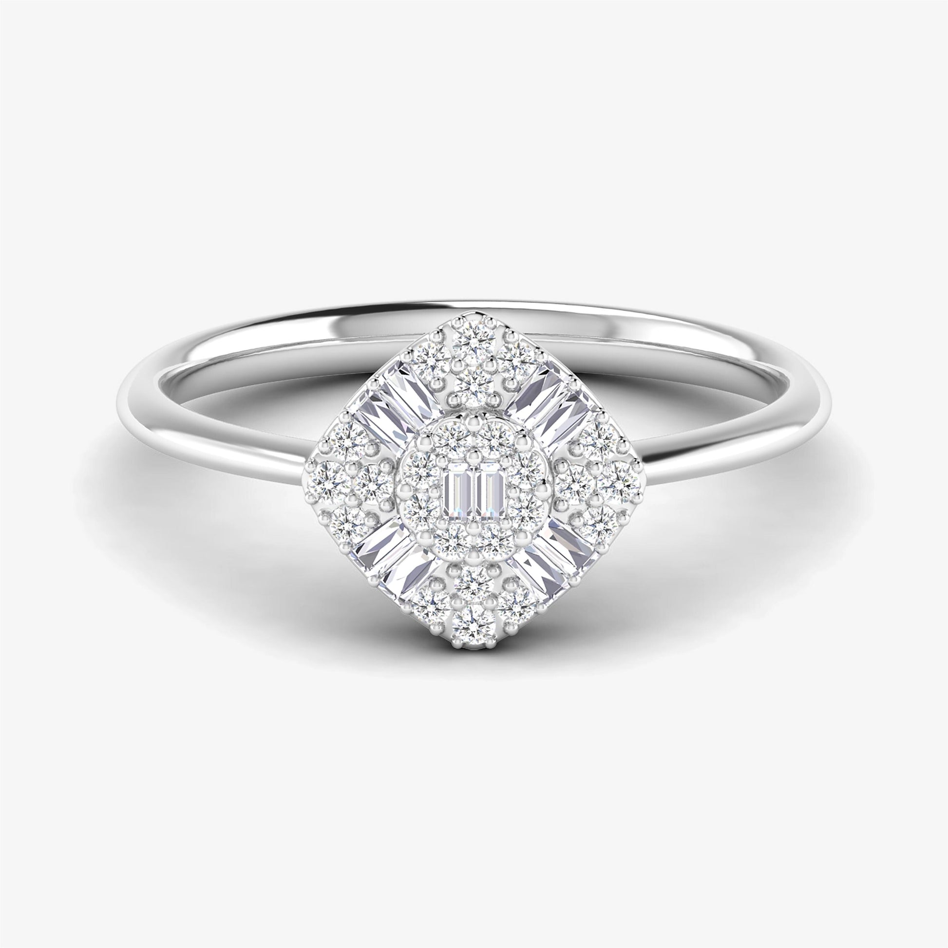 Declare your love with our 14K Baguette & Round-Cut Diamond Ring. This exquisite ring, crafted from 14KT solid white gold, features a harmonious blend of baguette and round-cut natural, real diamonds. Designed for elegance and sophistication, this US size 7 ring is a perfect choice for engagements or as a timeless gift for her. Its radiant sparkle and modern design make it a stunning symbol of commitment and beauty.