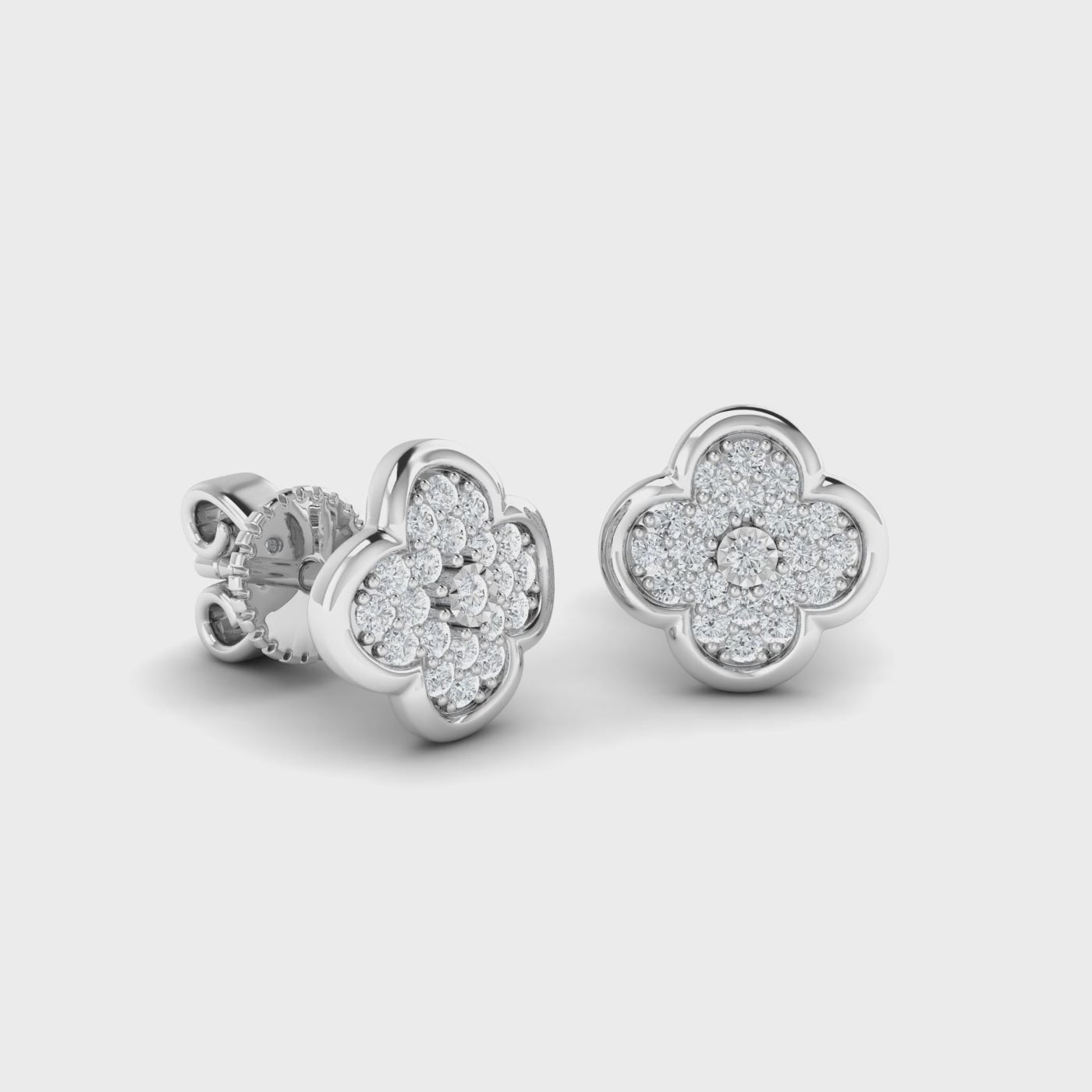 14K Bezel Dainty Clover Flower Stud