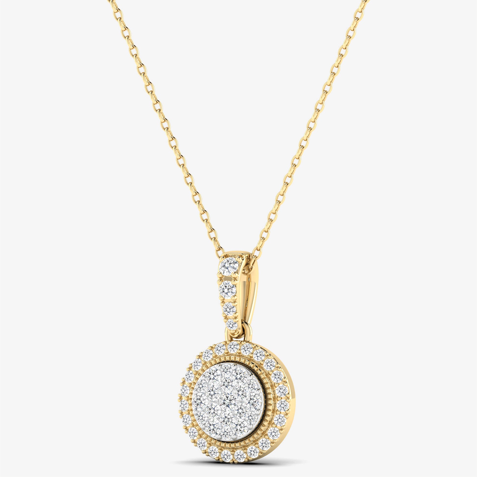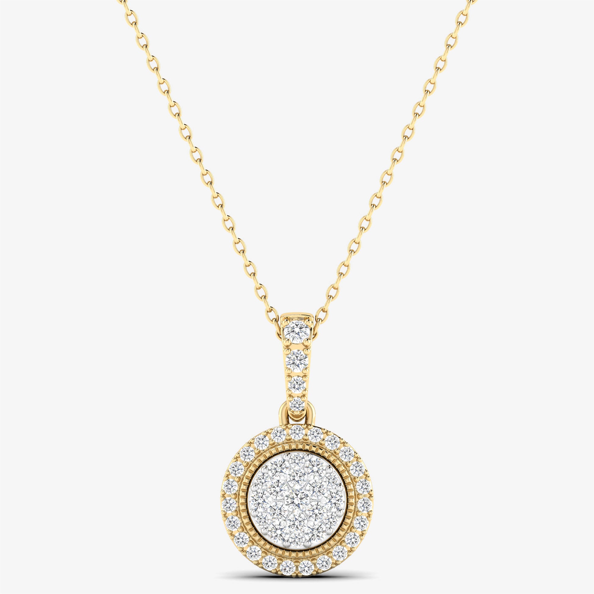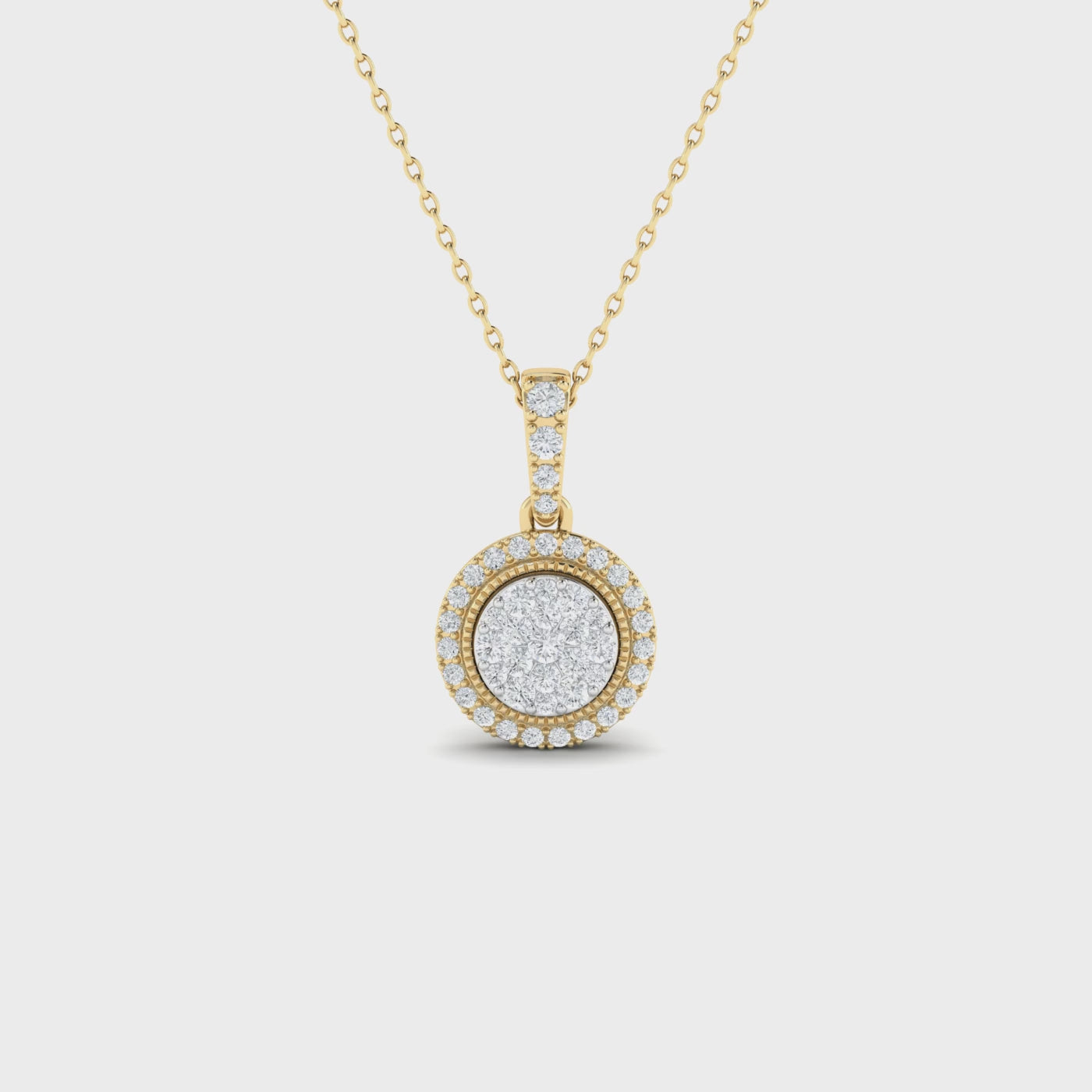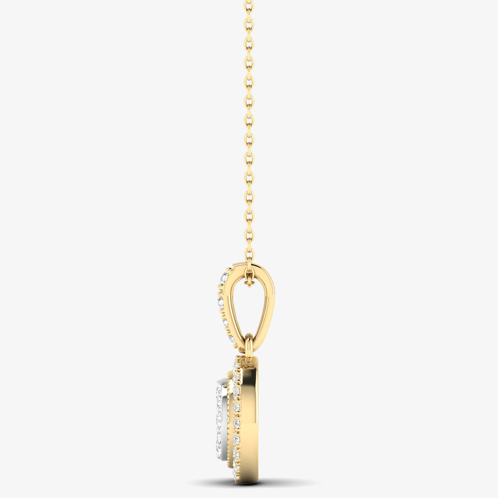 Add timeless elegance to your collection with our 14K Solid Gold Diamond Circle Pendant Necklace. Featuring a stunning double circle design adorned with natural, real diamonds, this necklace is crafted from 14KT solid gold for a luxurious finish. The diamond-encrusted bail adds an extra touch of sparkle, making this pendant perfect for both everyday wear and special occasions. A modern classic that radiates sophistication and grace.