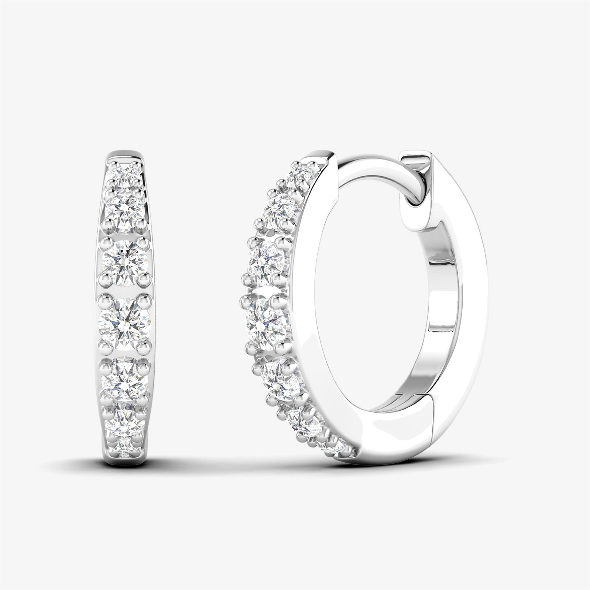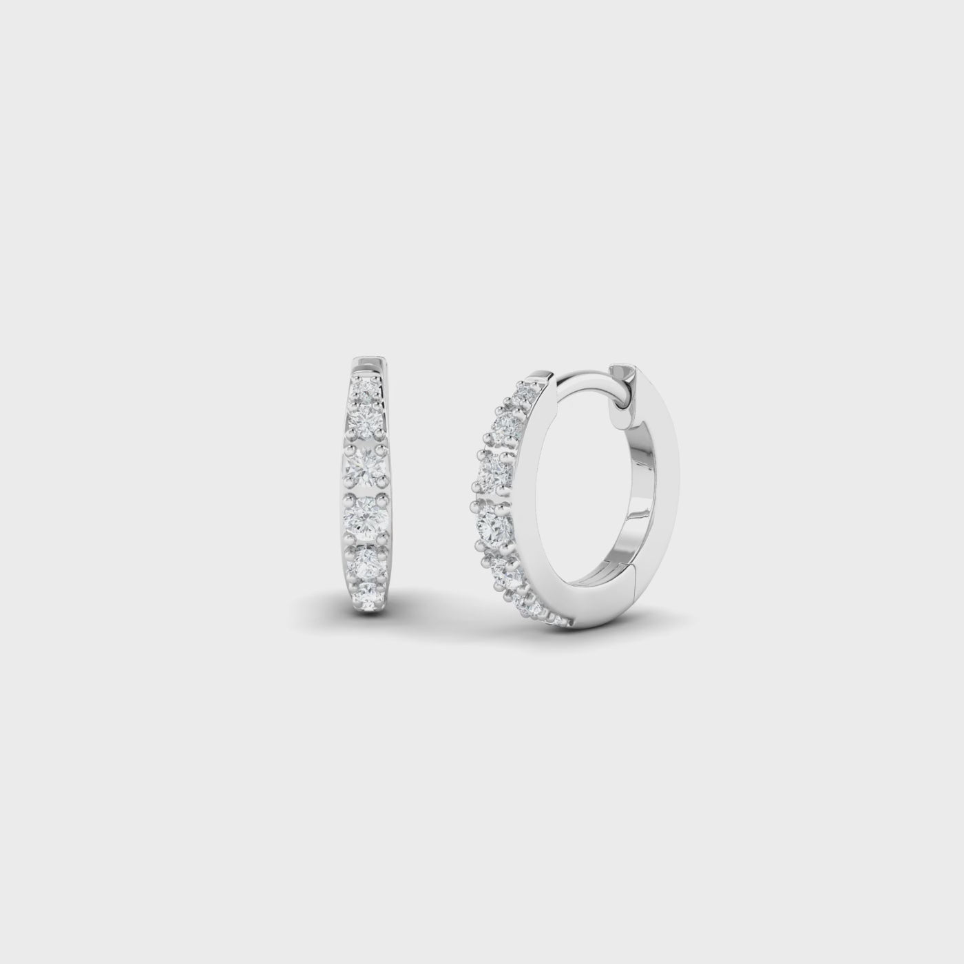 Elevate your style with our 14K White Gold Diamond Huggies, featuring prong-set diamonds in a dazzling all-around design. These small hoops with prong settings offer brilliant sparkle and a chic, versatile look. Perfect for everyday wear or special occasions, they are a timeless addition to any jewelry collection.