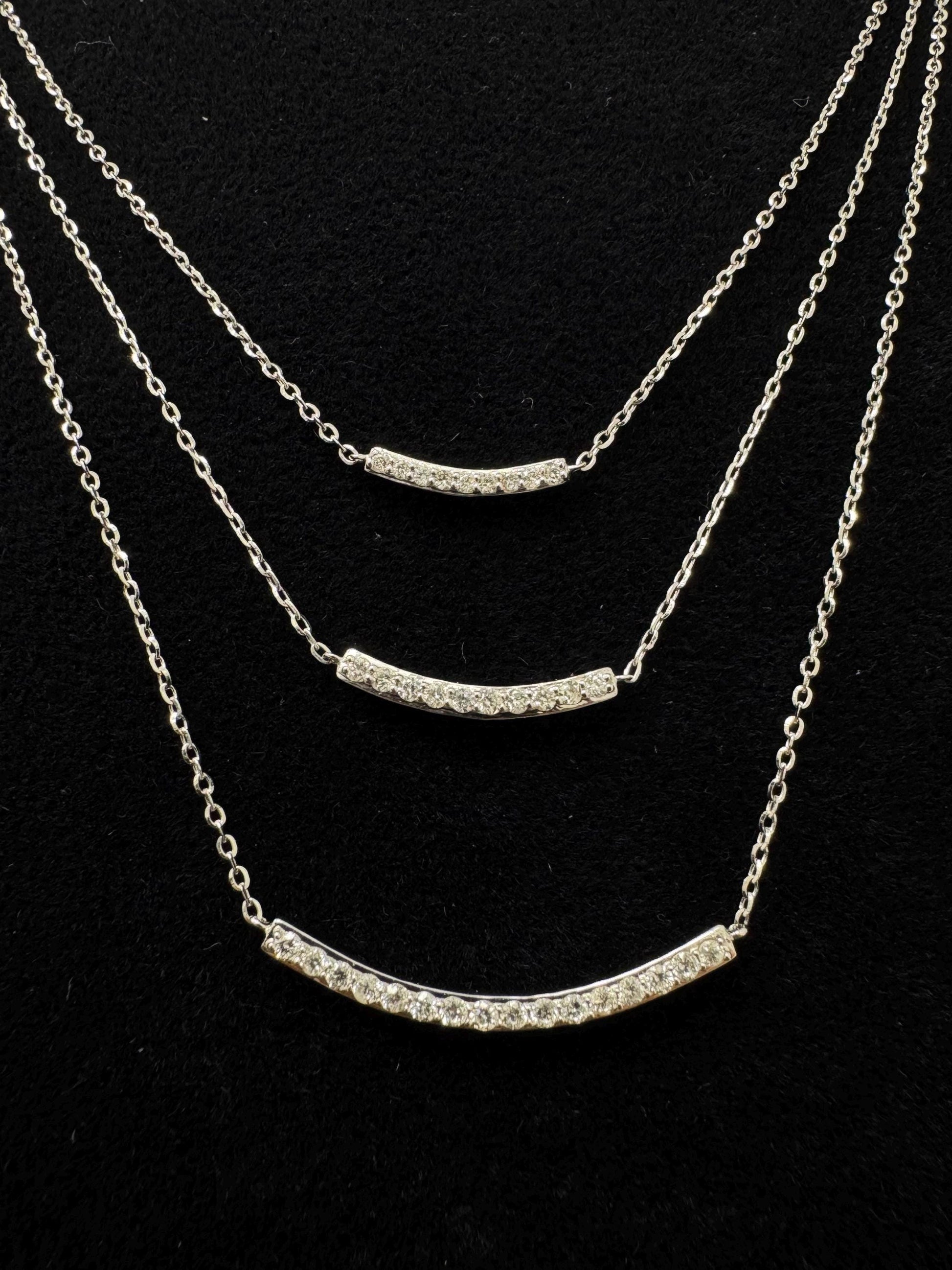 Add a touch of elegance with our 14K Solid White Gold Trio Diamond Necklace. Featuring three natural, real diamonds, this exquisite layered necklace boasts a multi-strand design thatโs both timeless and contemporary. Crafted from 14K solid white gold, itโs the perfect piece to elevate any outfit with sophistication and sparkle. Ideal for layering or wearing solo, this necklace embodies versatile elegance for every occasion.