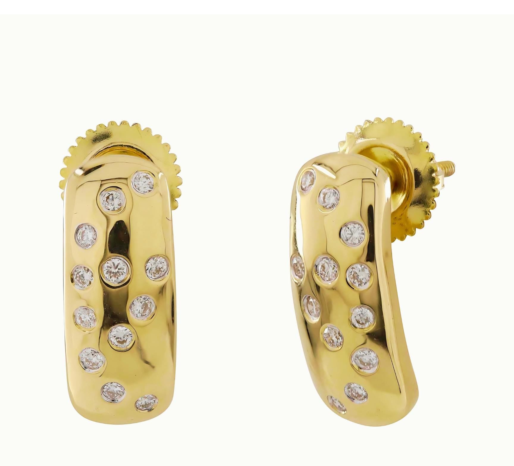 Add bold elegance to your look with our 18K Chunky Diamond Earrings. Crafted from 18KT solid gold, these earrings feature natural diamonds set in a miniature curved design with a secure screw back closure. A striking statement piece, perfect for those who love modern and luxurious styles.