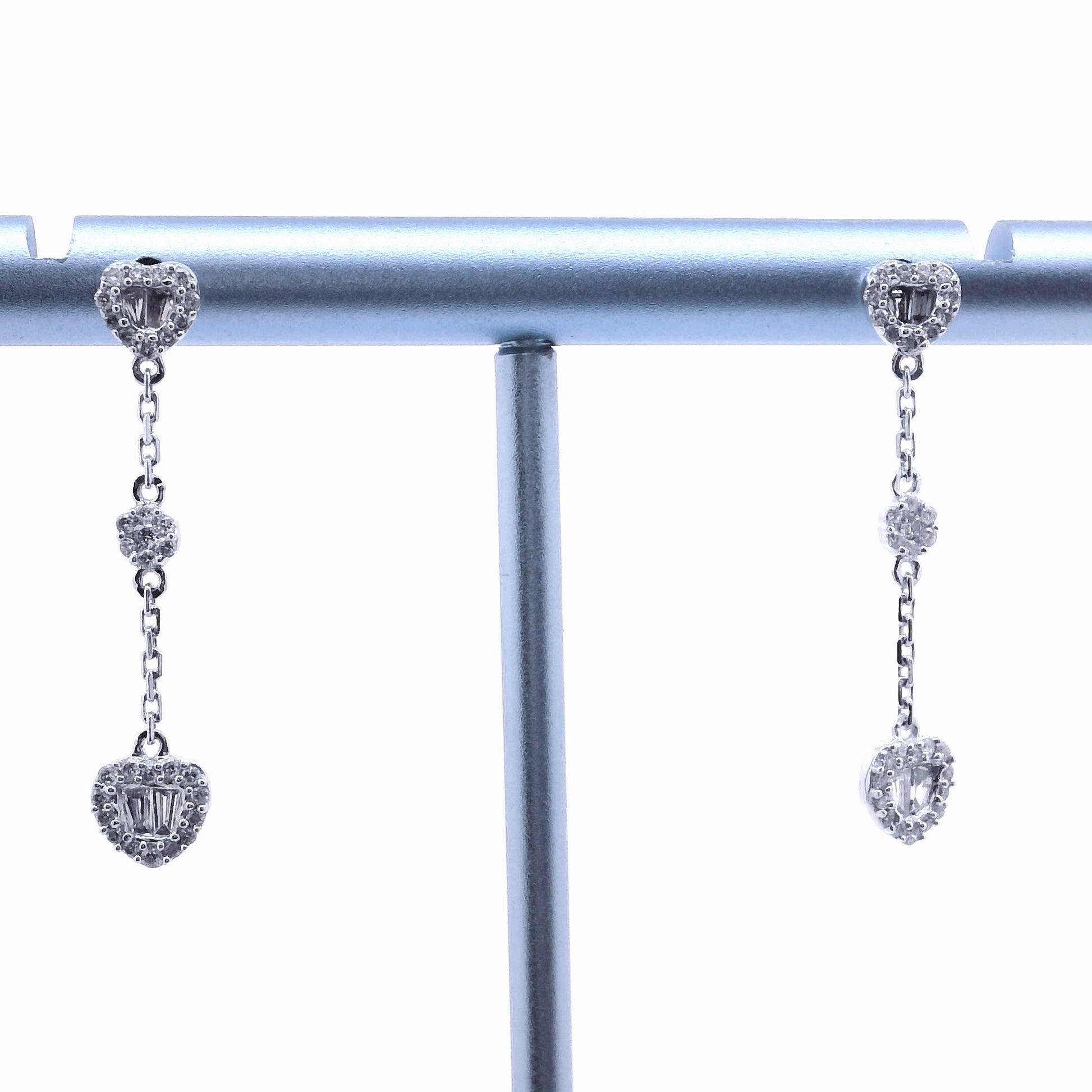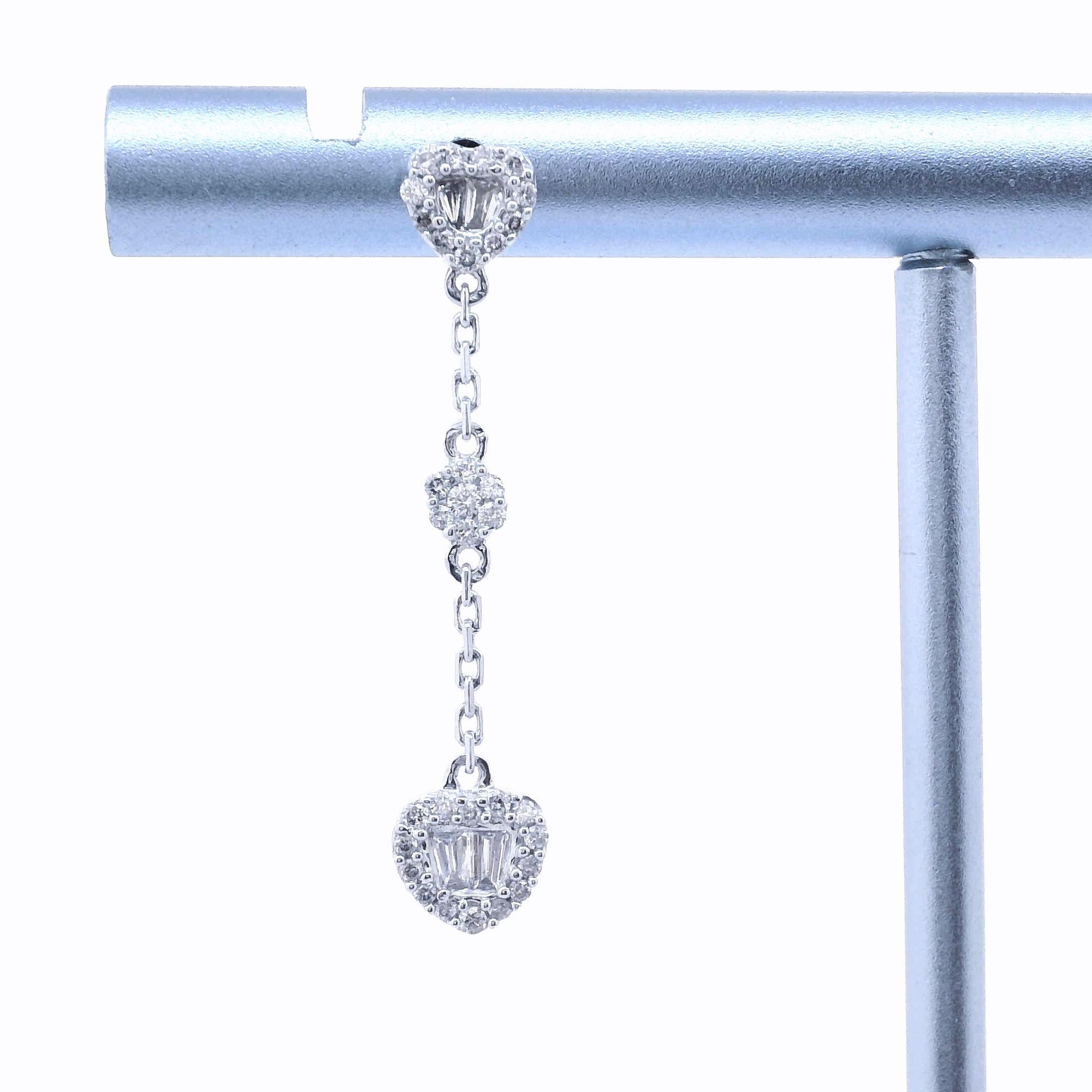 18K Baguette Heart Dangle and Drop Earring