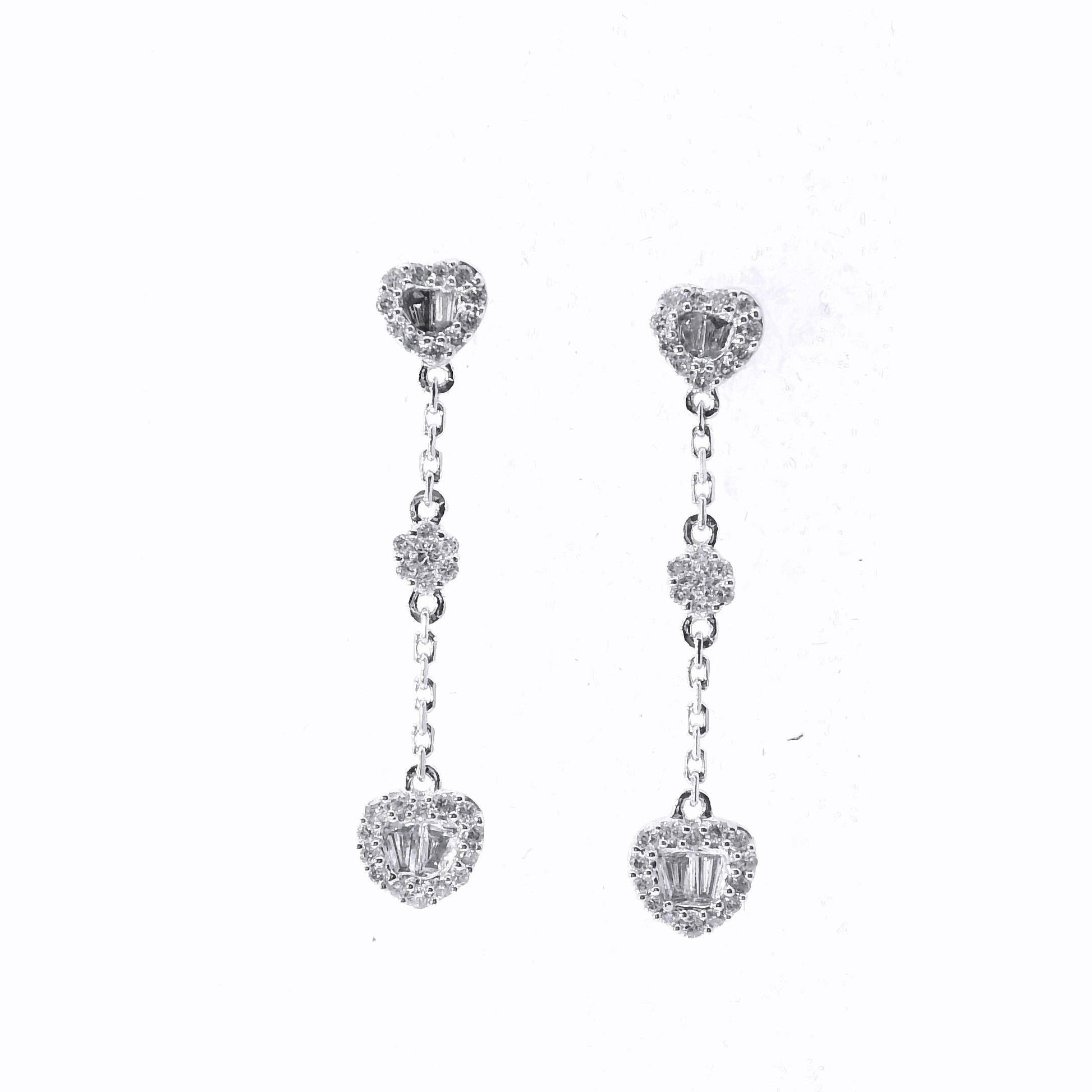 Show your love with our 18K Diamond Heart Earrings. Crafted from solid white gold, these elegant dangle and drop earrings feature natural real diamonds in a stunning baguette heart design. A perfect blend of romance and sophistication, ideal for special occasions.