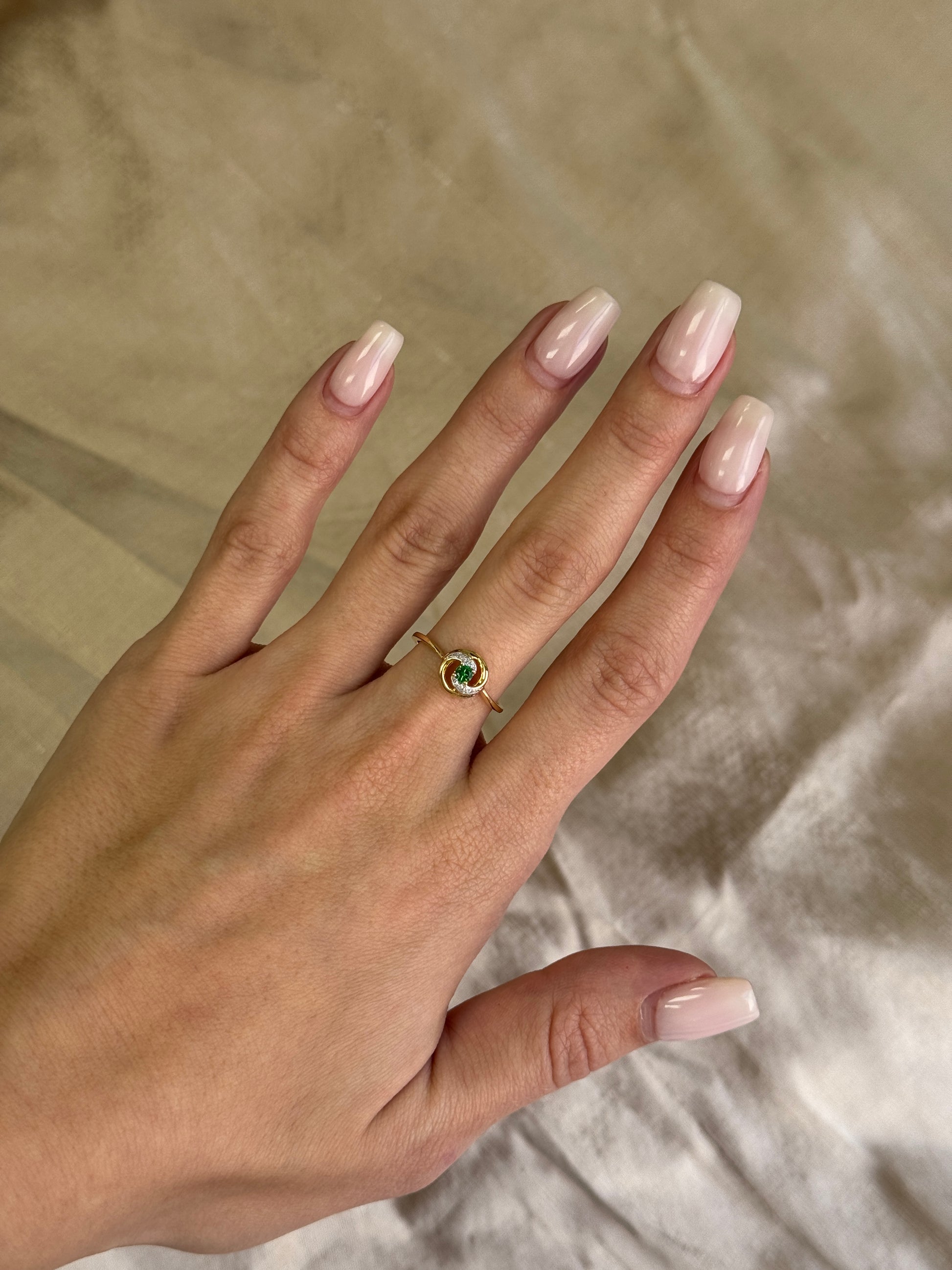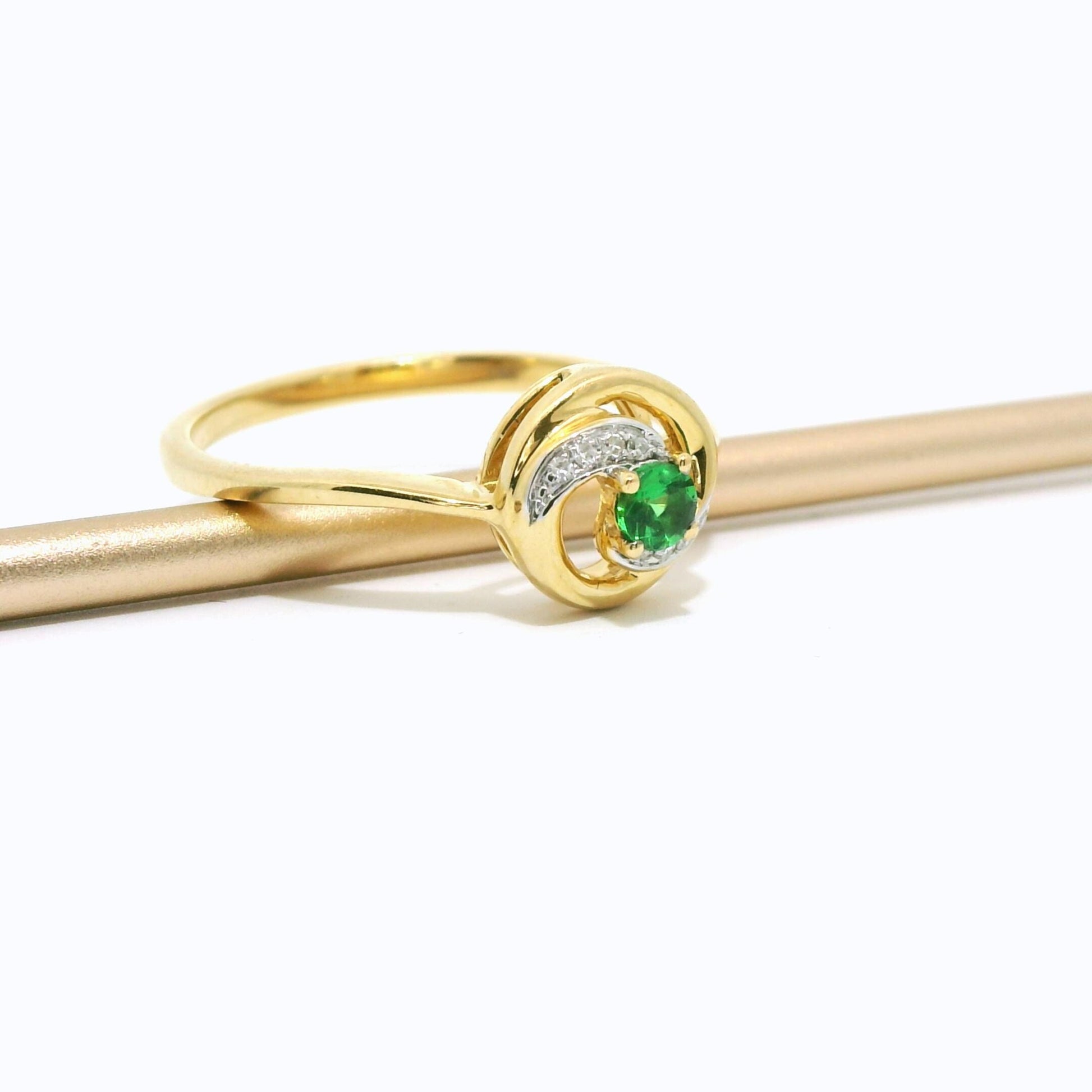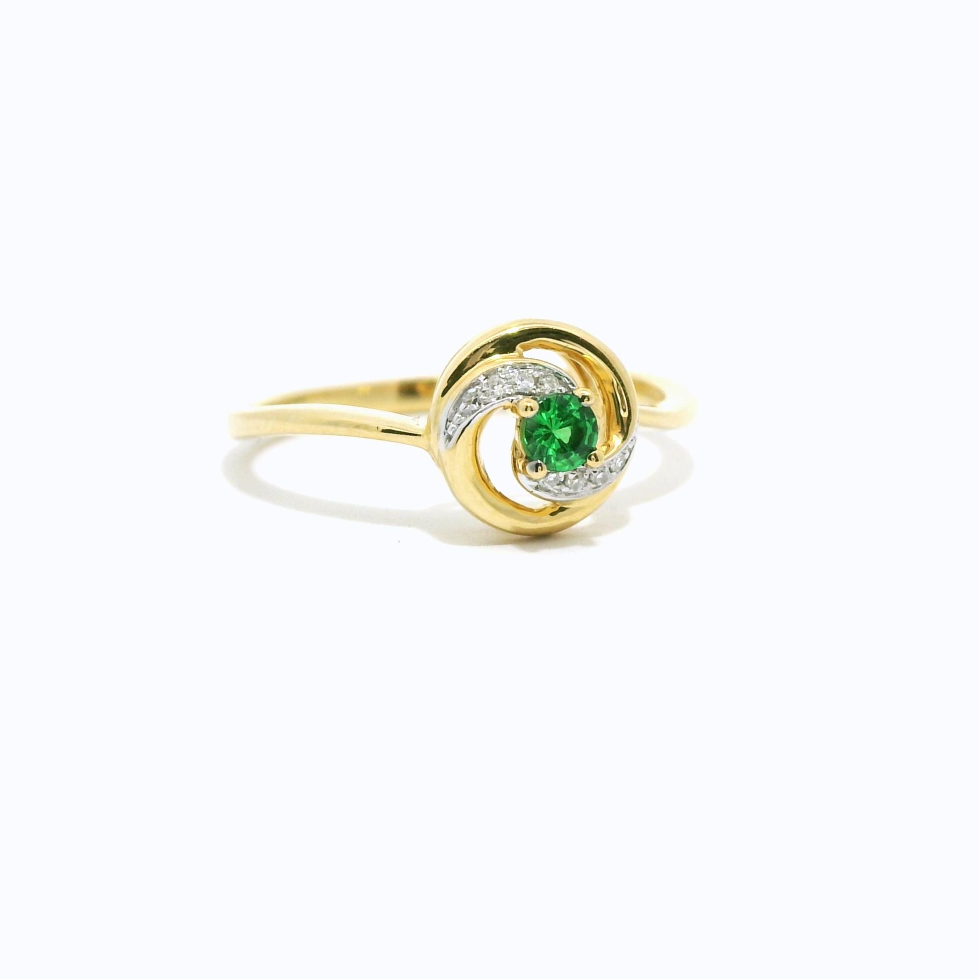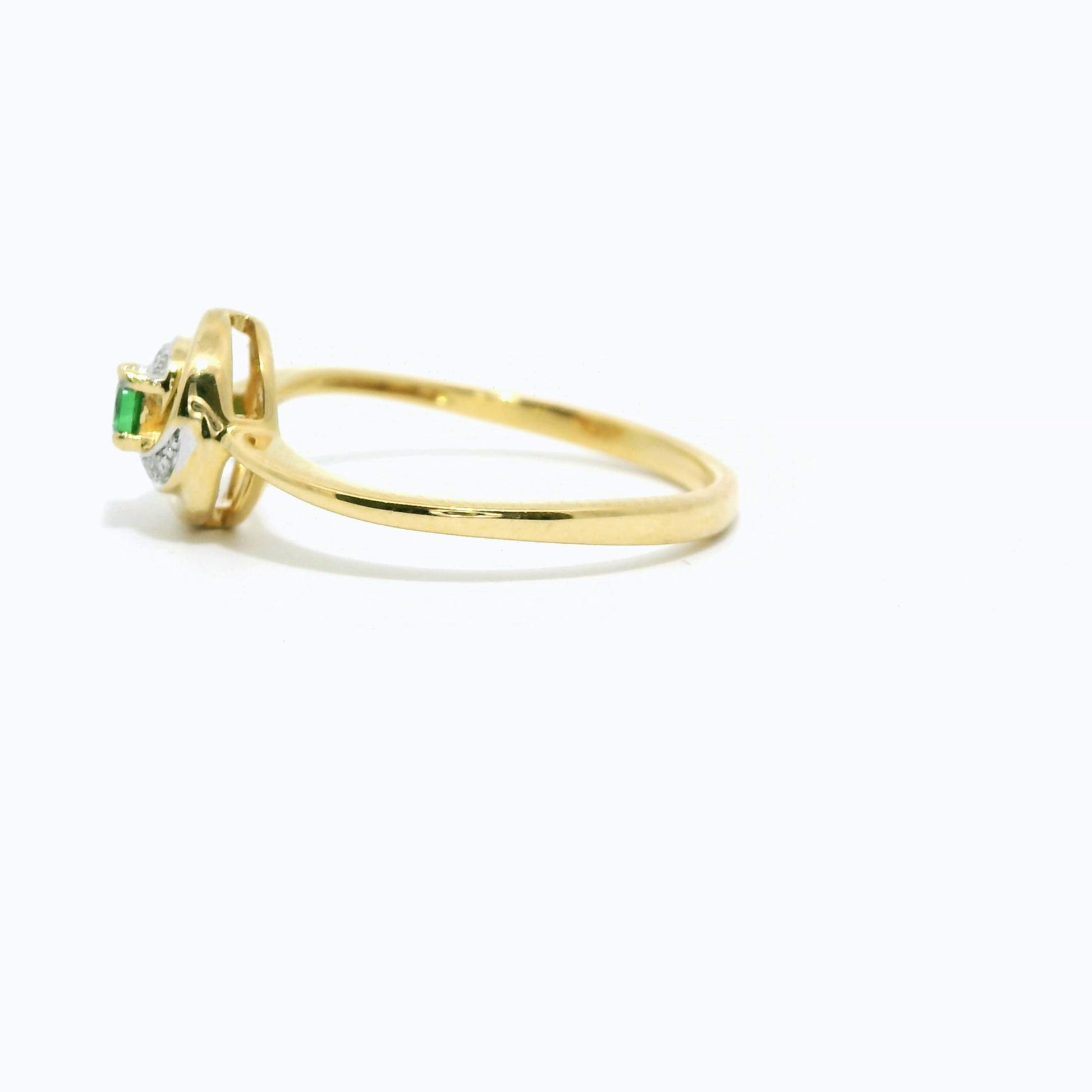 Find your elegance in our 18K Gold Diamond Ring featuring a precious emerald solitaire. This dainty minimalist ring showcases natural diamond accents, perfectly complementing the stunning freeform gemstone. Ideal as a Promise Ring or a statement piece, it combines classic beauty with modern sophistication, making it a timeless addition to any jewelry collection.