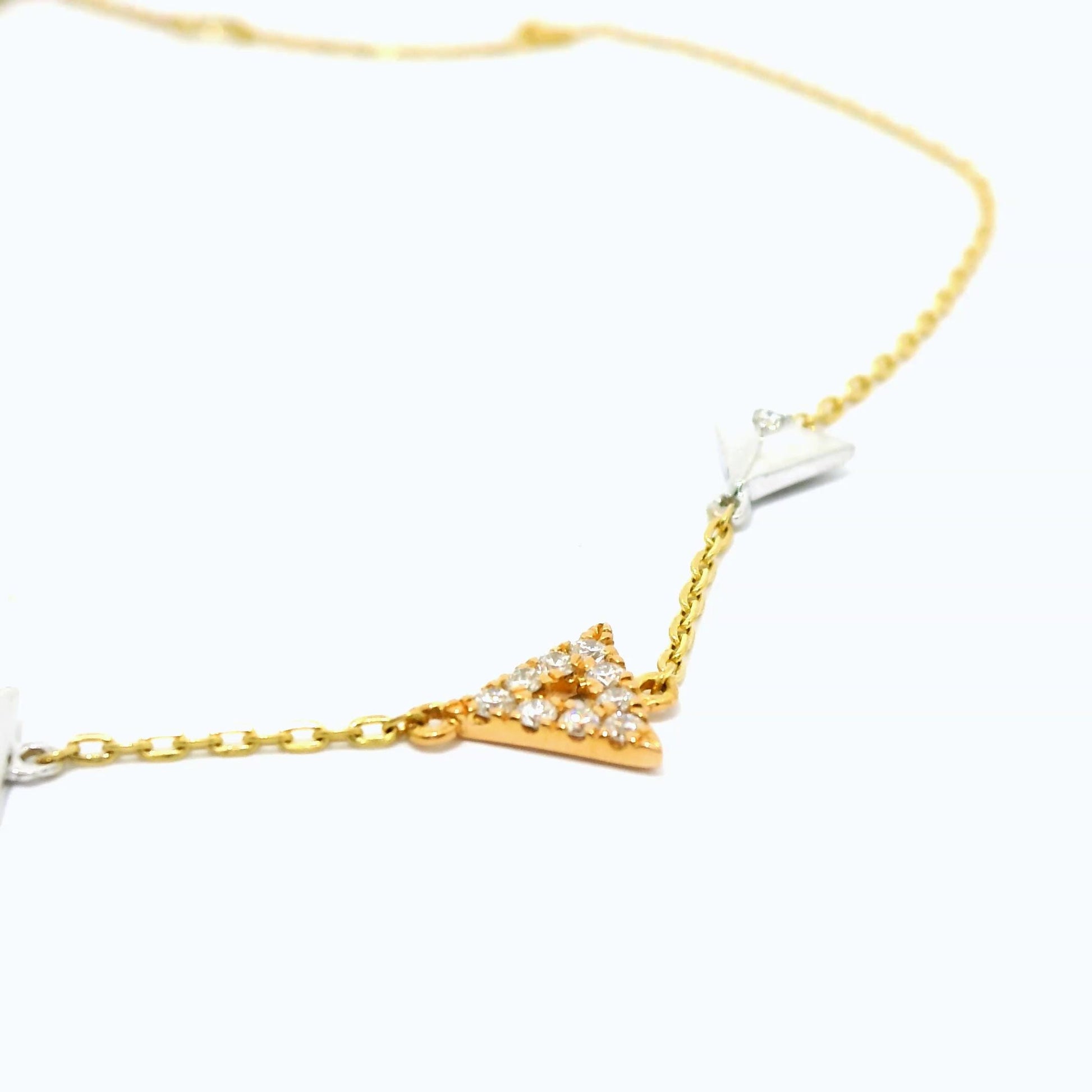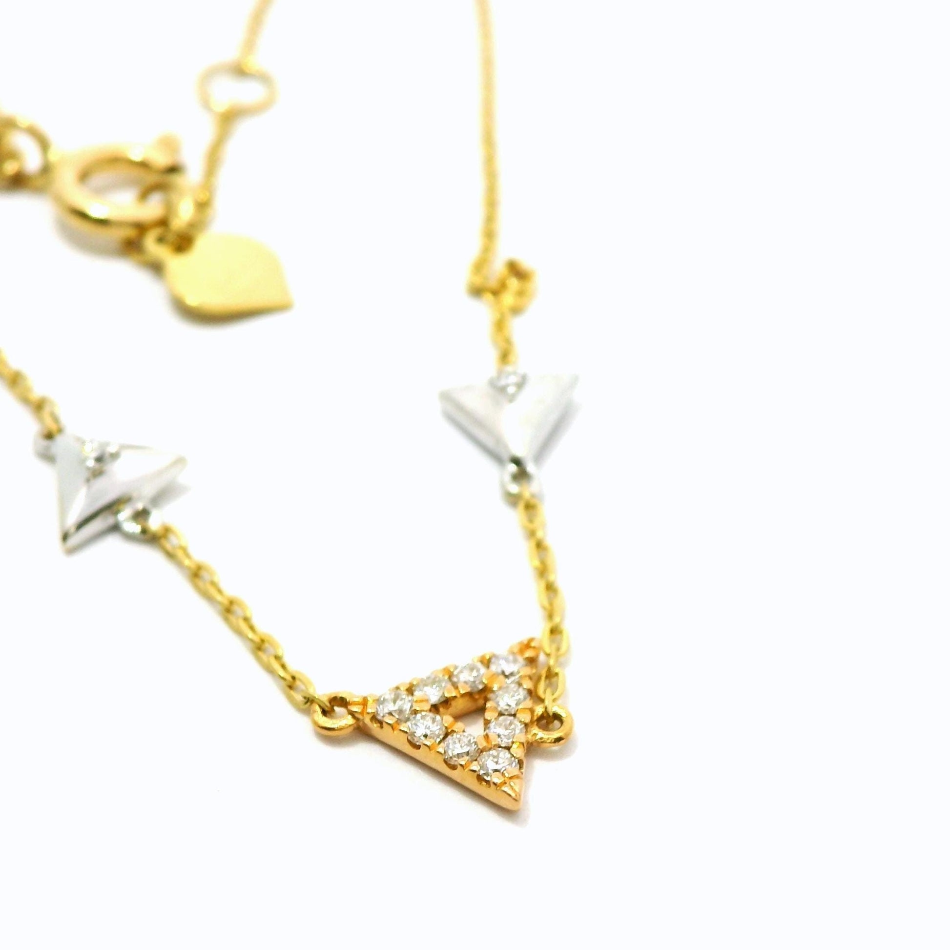 Celebrate love with our 18K Gold Heart Bracelet. This lightweight and dainty charm bracelet features natural diamonds and a unique Triangle of Love design. Crafted from 18K gold, it comes with an adjustable chain, making it a perfect fashion accessory for any occasion.