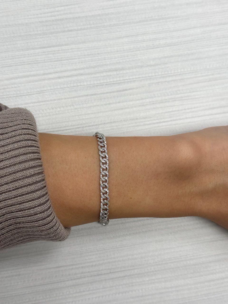 Enhance your style with our 925 Sterling Silver Cuban Diamond Bracelet, featuring natural VS-SI diamonds with a total weight of 0.98 CTW. Designed with a sleek Cuban chain and a white silver lobster lock, this bracelet offers both security and elegance. Its unisex design makes it a versatile accessory for any occasion, perfect for layering or wearing solo. Whether as a thoughtful gift or a personal indulgence, this bracelet adds a touch of luxury to everyday fashion.