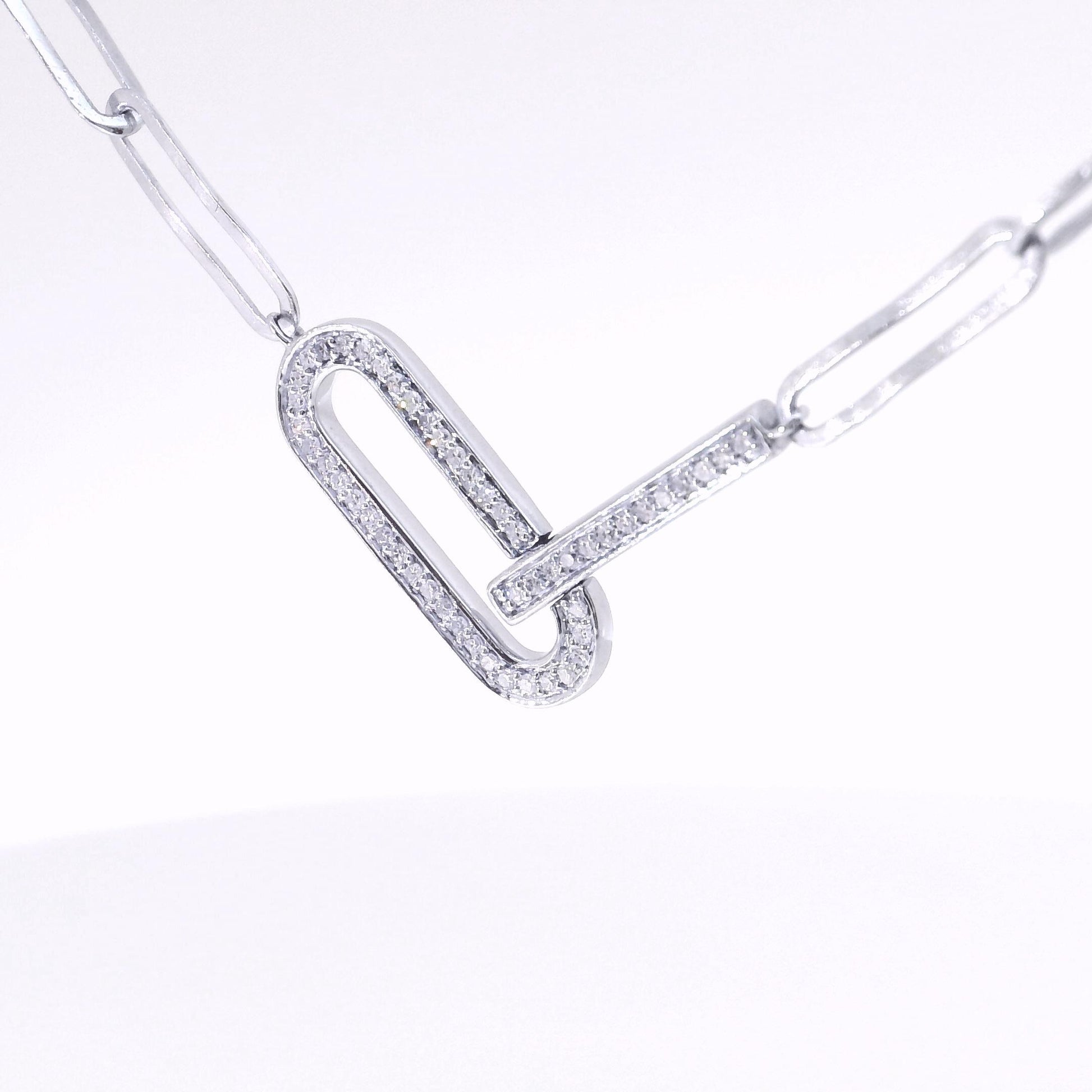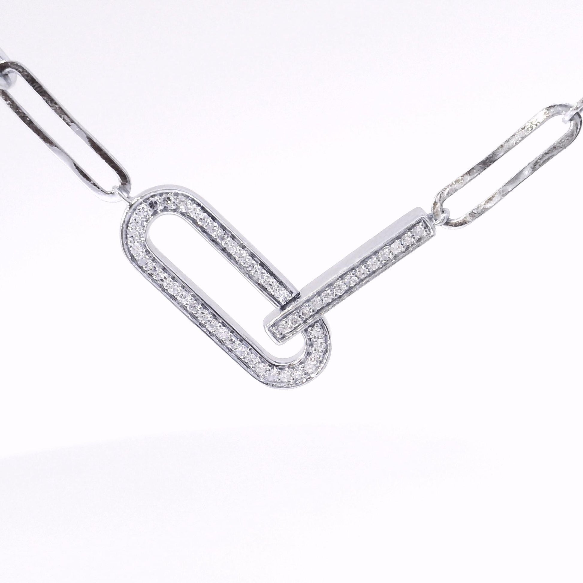 Elevate your jewelry collection with our 925 Sterling Silver Diamond Necklace. This elegant piece features a unique paperclip bar diamond design that adds a modern touch to your ensemble. Crafted with natural diamonds, it sparkles beautifully against the 18" white silver chain, making it perfect for both everyday wear and special occasions. Its minimalist aesthetic ensures versatility, allowing it to be layered or worn solo for a refined look. Embrace elegance and sophistication with this exquisite necklace that complements any outfit effortlessly.