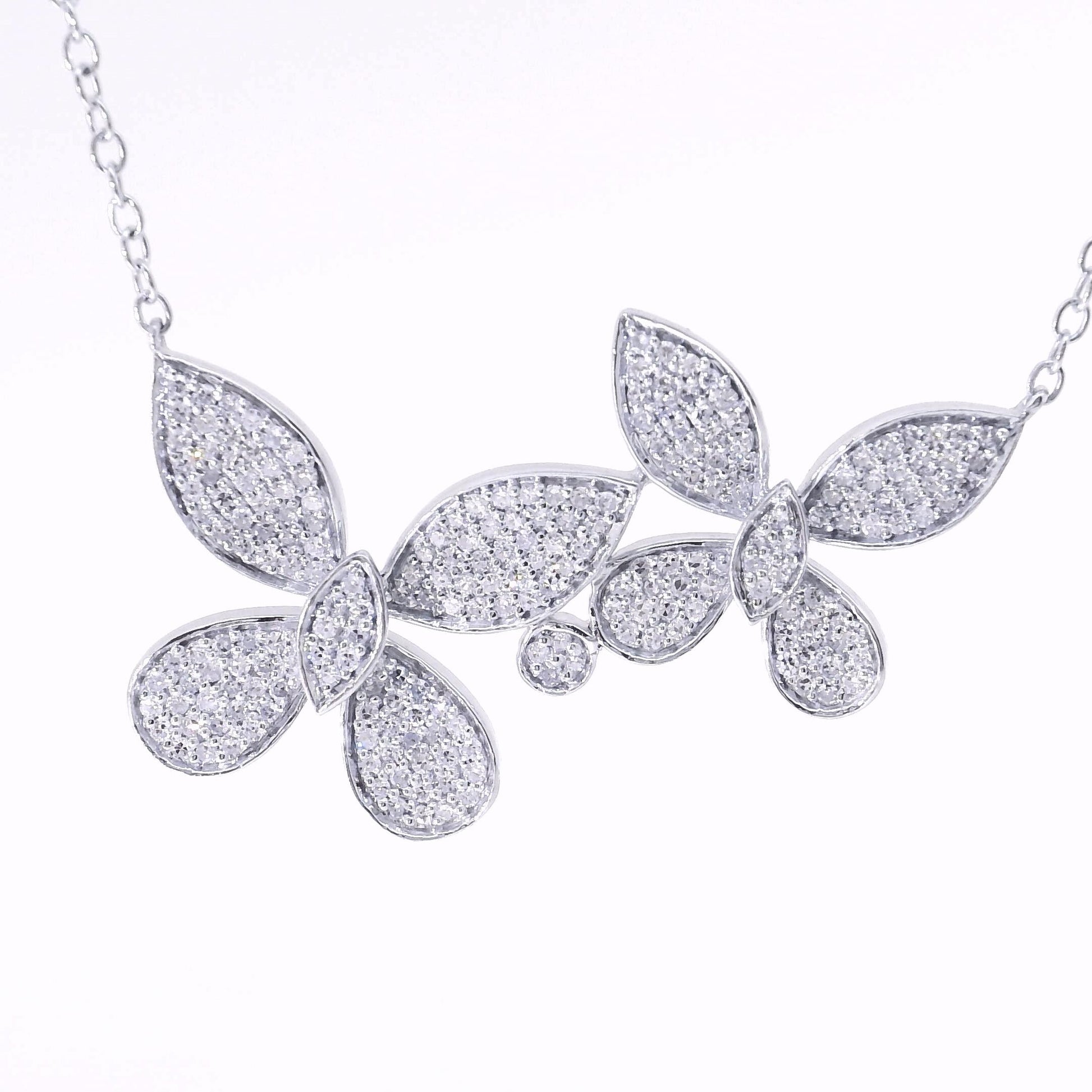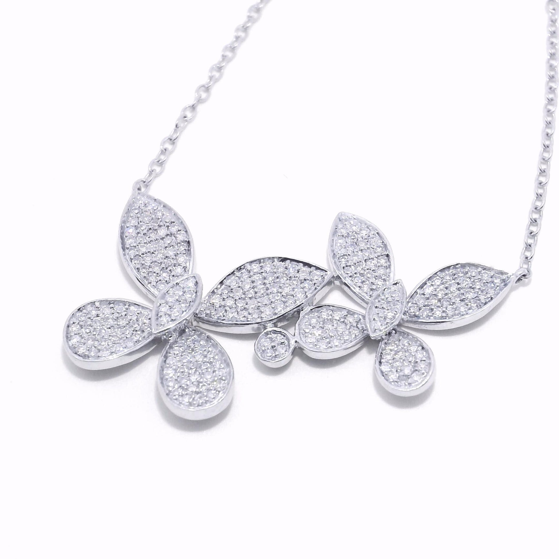 Make a bold statement with our 925 Sterling Silver Diamond Necklace, featuring a beautiful double butterfly necklet design. Adorned with natural VS-SI diamonds, this elegant piece symbolizes transformation and grace. The butterfly pair necklet adds a whimsical touch, while the sleek silver finish ensures versatility for any occasion. Whether dressed up for an event or worn casually, this statement fashion necklet is a perfect choice for showcasing your unique style.