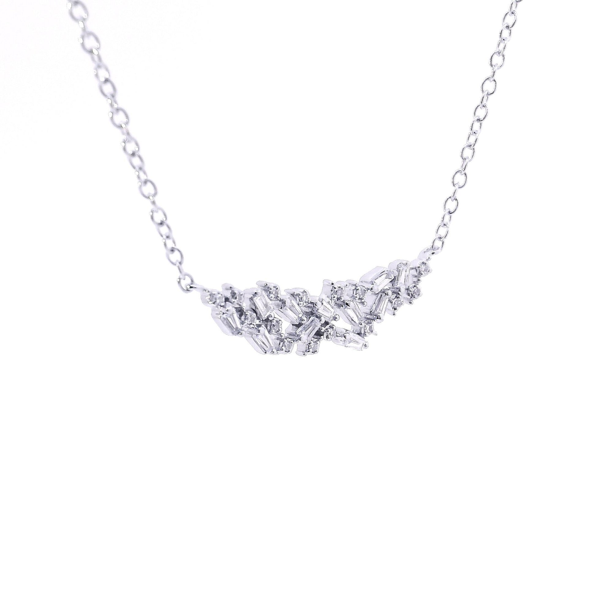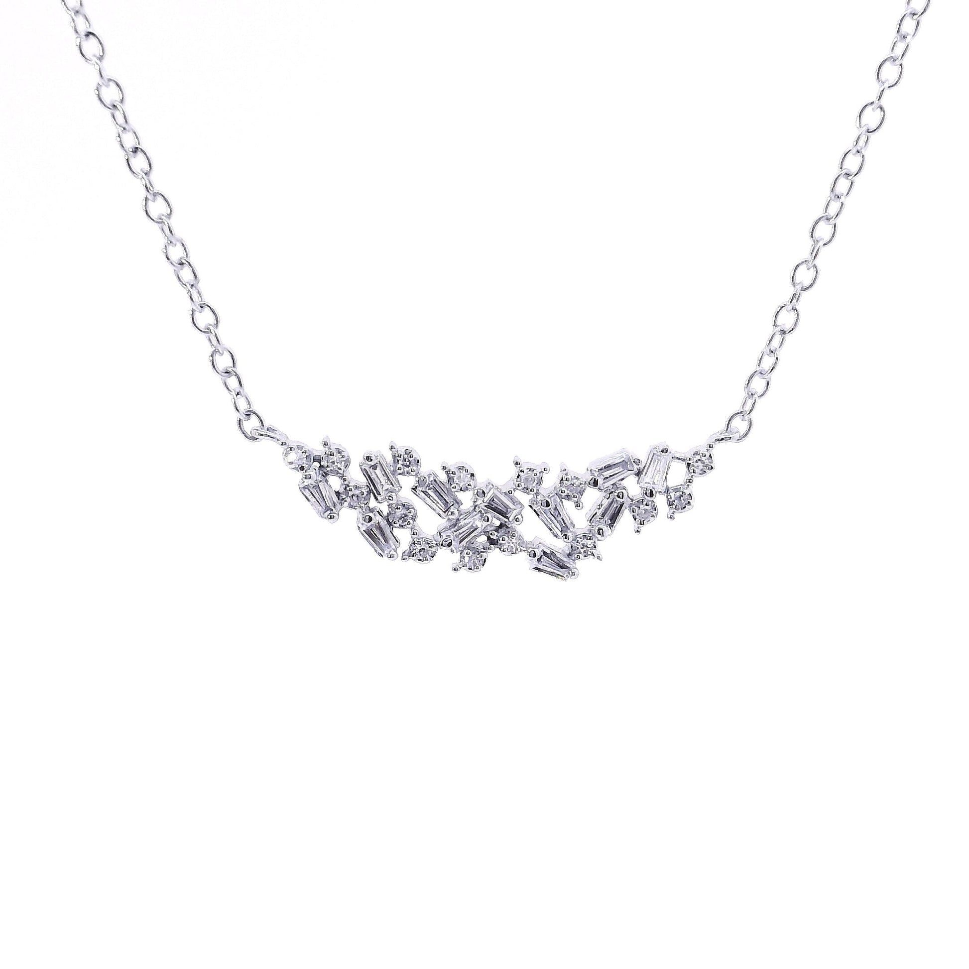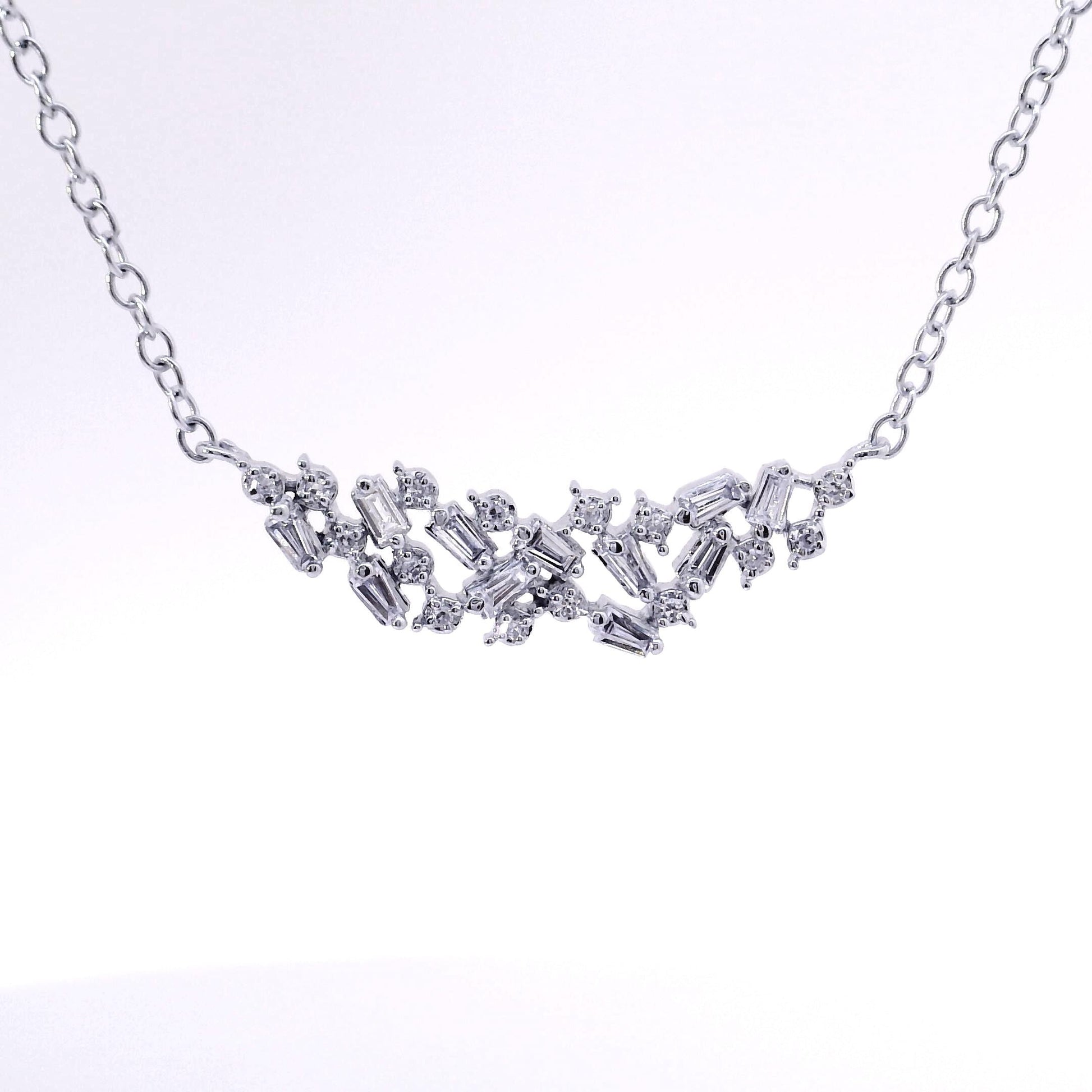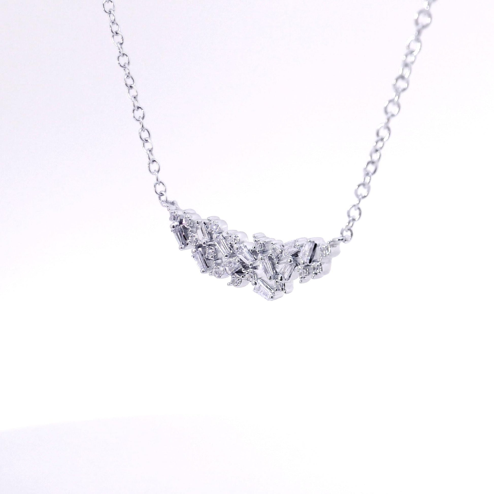 Elevate your jewelry collection with this exquisite Baguette Diamond Necklace. Crafted from 925 sterling silver, this necklace features natural real diamonds set in a stunning baguette design. The VS-SI diamonds add a touch of elegance and sparkle, making this piece perfect for any occasion. Its versatile white silver finish complements any outfit, whether you're dressing up for a special event or adding a touch of luxury to your everyday look. This necklace is not only a stylish accessory but also a thoughtful gift for her that she will cherish for years to come.