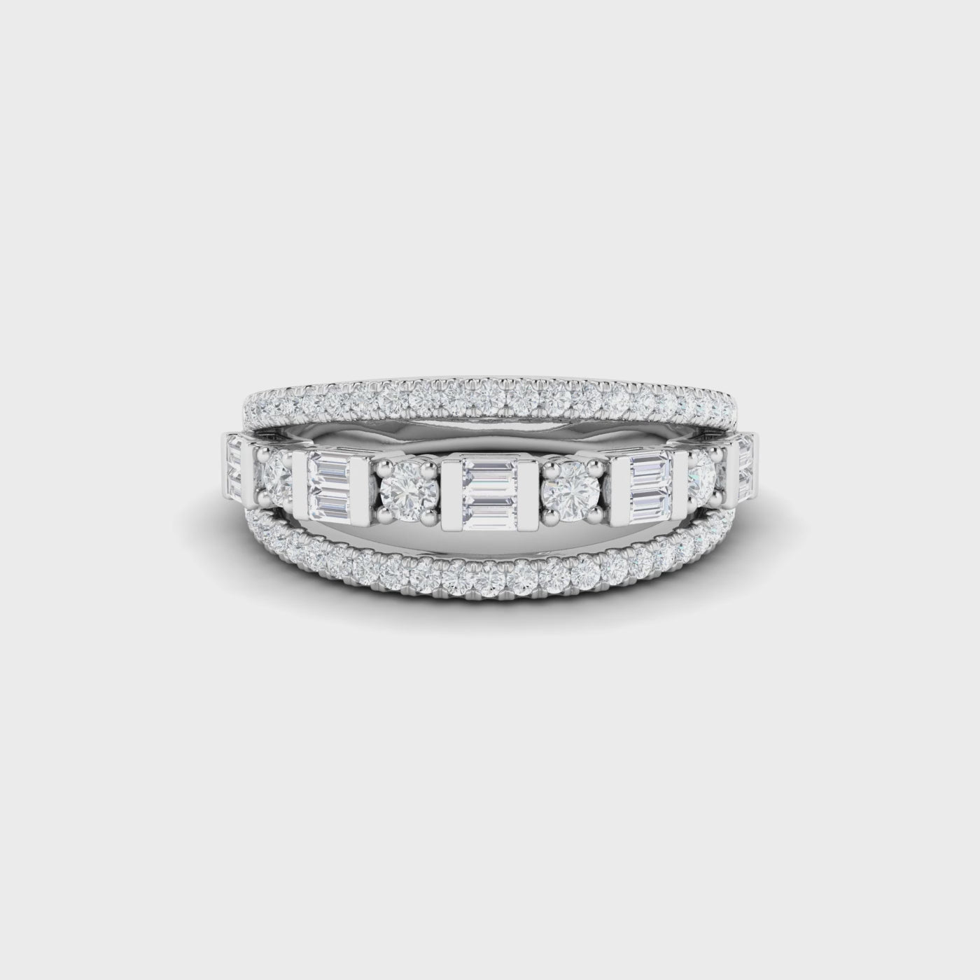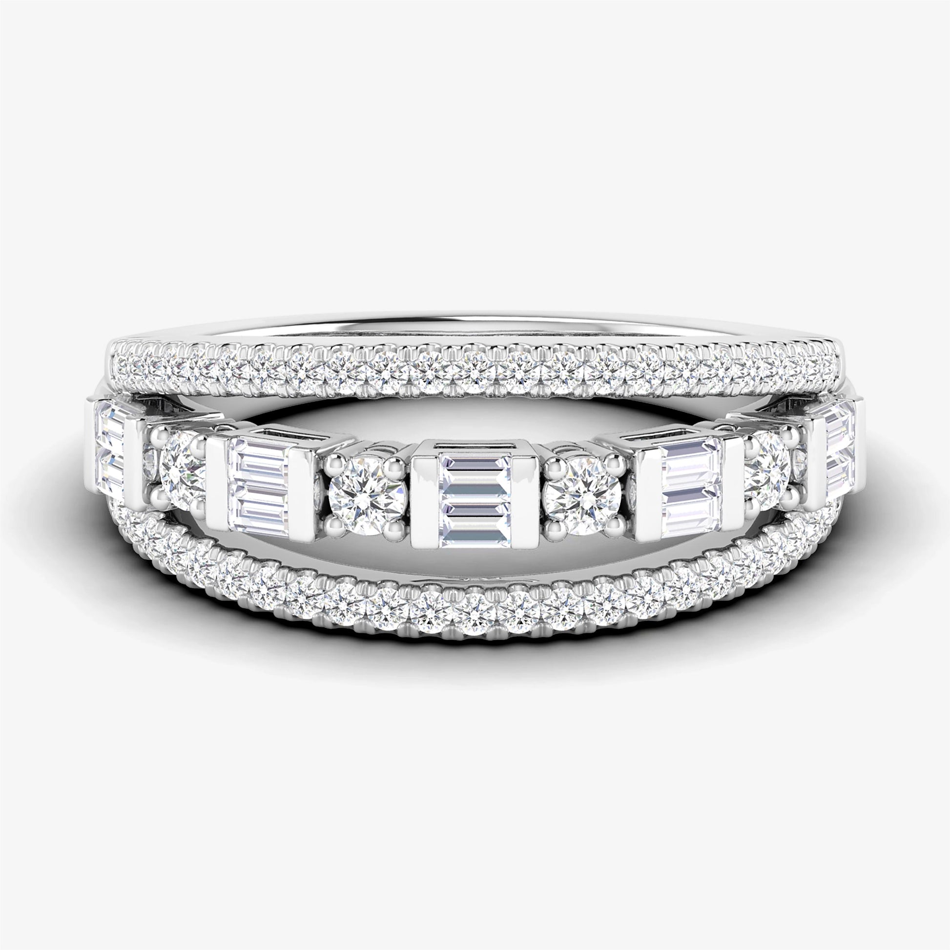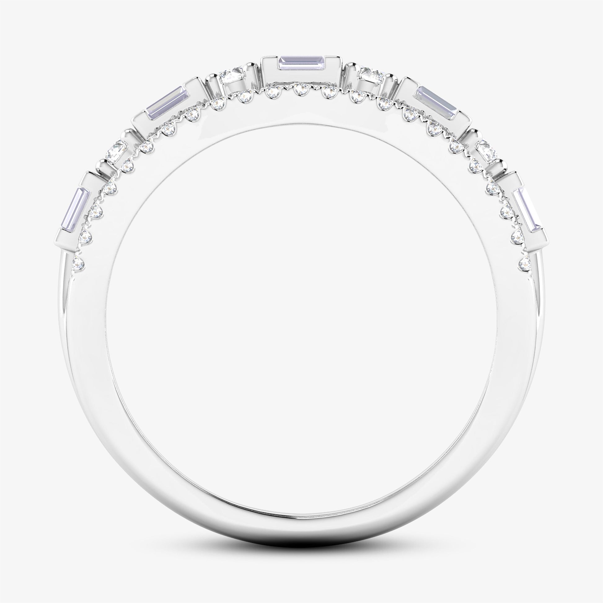 Celebrate timeless elegance with our Baguette & Round-Cut Link Ring. Crafted from 14K solid white gold, this stunning ring features a unique link design adorned with natural, real I-grade diamonds in a blend of baguette and round cuts. Perfect as an anniversary ring or a statement piece, this US size 7 ring combines modern sophistication with classic luxury. A true symbol of everlasting beauty.