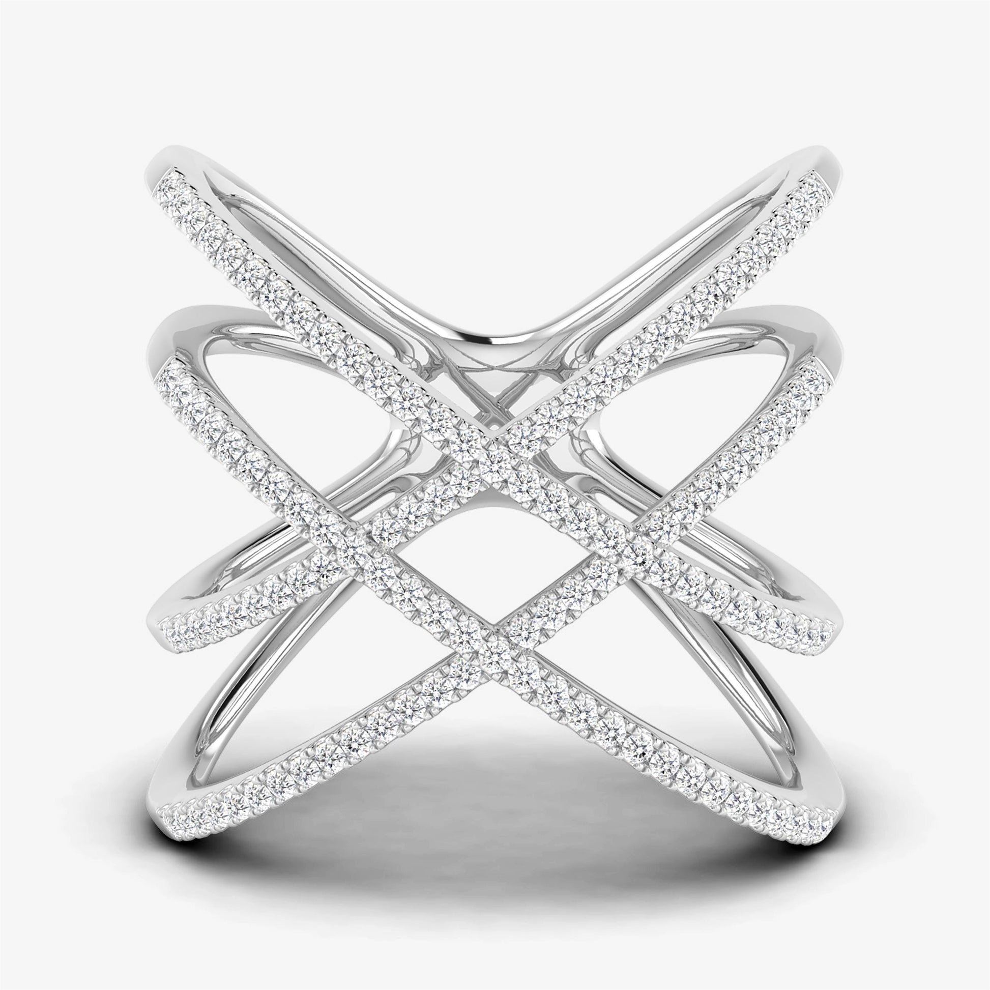 Embrace the beauty of our sophisticated Layered Woven Diamond Ring. This stunning piece features a unique triple X design, intricately woven with natural diamonds set in 14K solid white gold. The women's wrap ring offers a contemporary yet timeless appeal, making it a perfect statement piece for any occasion.