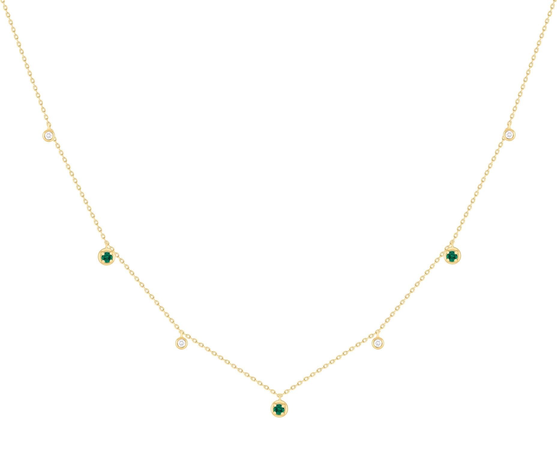 Embrace the beauty of vibrant elegance with our 18K Emerald Layering Necklace. This exquisite piece features alternating emeralds and diamonds set in a bezel design, crafted from 18K solid gold. Perfect for layering or wearing alone, this precious emerald necklace captures the essence of sophistication and timeless beauty.