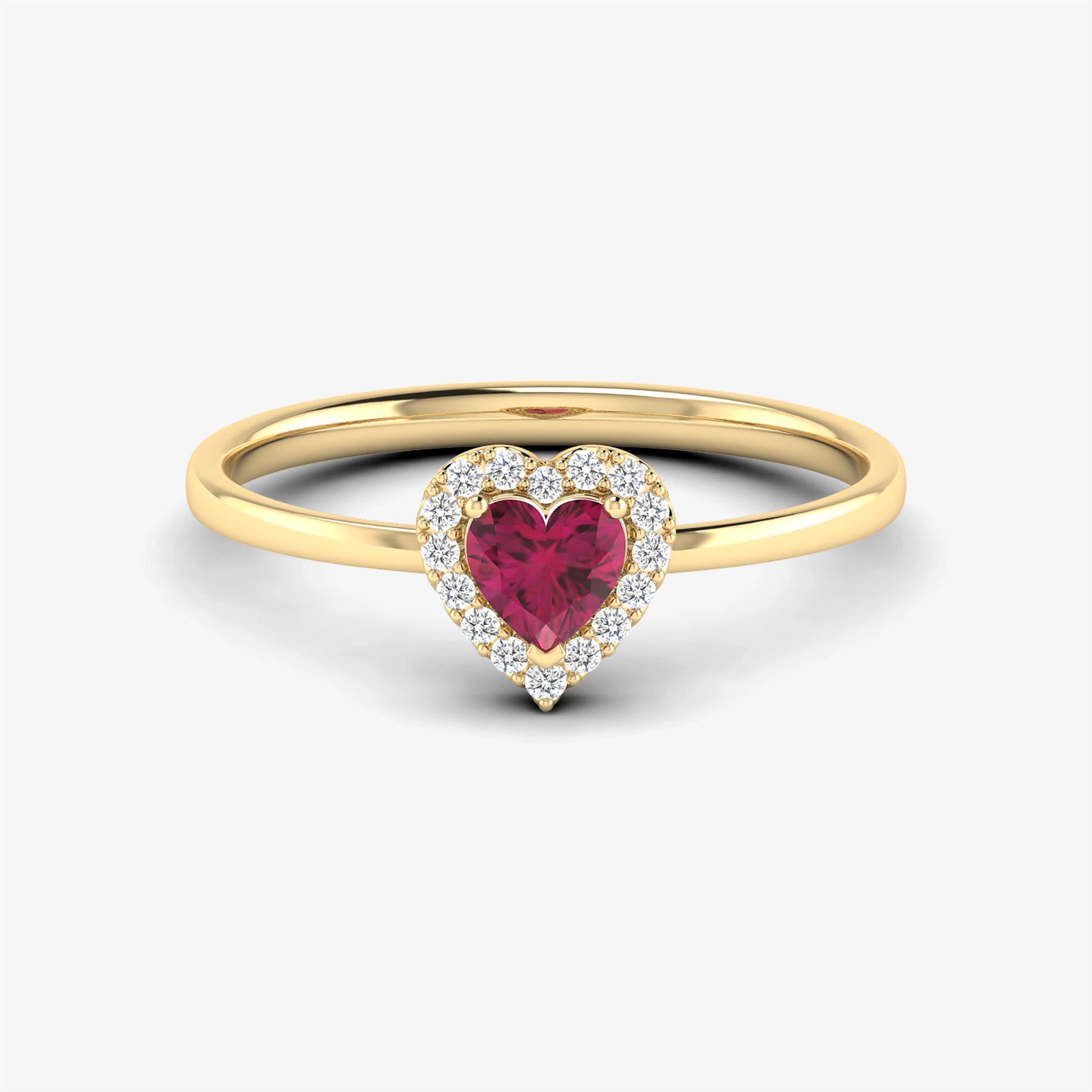 Embrace the beauty of love with our 14k Gold Diamond Ruby Heart Ring. This elegant ring features brilliant diamond set with natural gemstone sitting on a straight shank, making it a timeless choice for a Diamond Promise Ring or a Diamond Simple Engagement Ring. Designed with minimalist charm, this Proposal Ring captures the essence of love and commitment with its understated elegance.