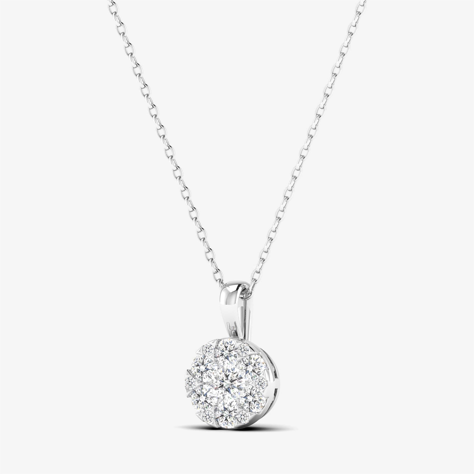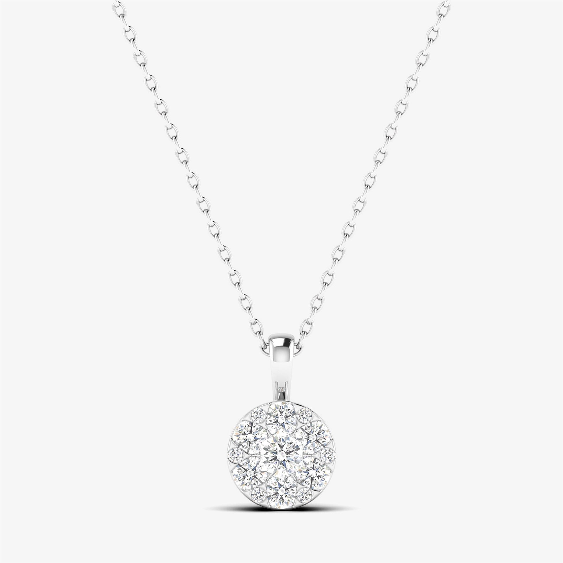 Add a touch of sparkle with our 14K Solid Gold Diamond Pendant. This round halo cluster pendant necklace is adorned with natural round white diamonds, creating a dazzling and dainty design. Crafted from 14K solid gold and paired with an 18" cable chain and spring lock closure, it's perfect for everyday elegance.