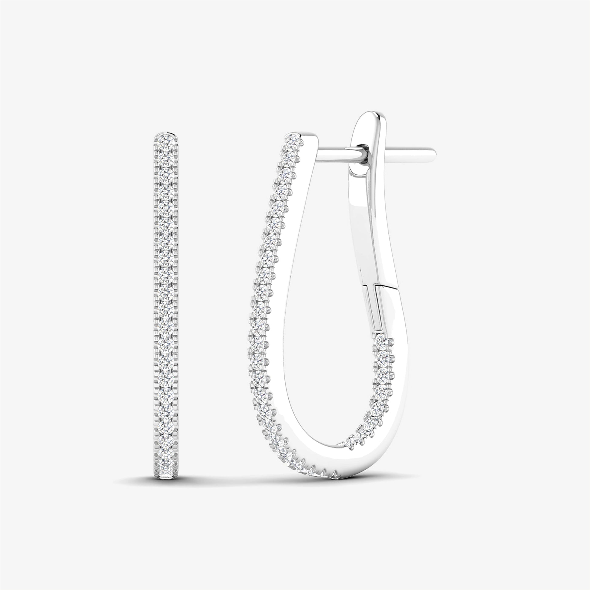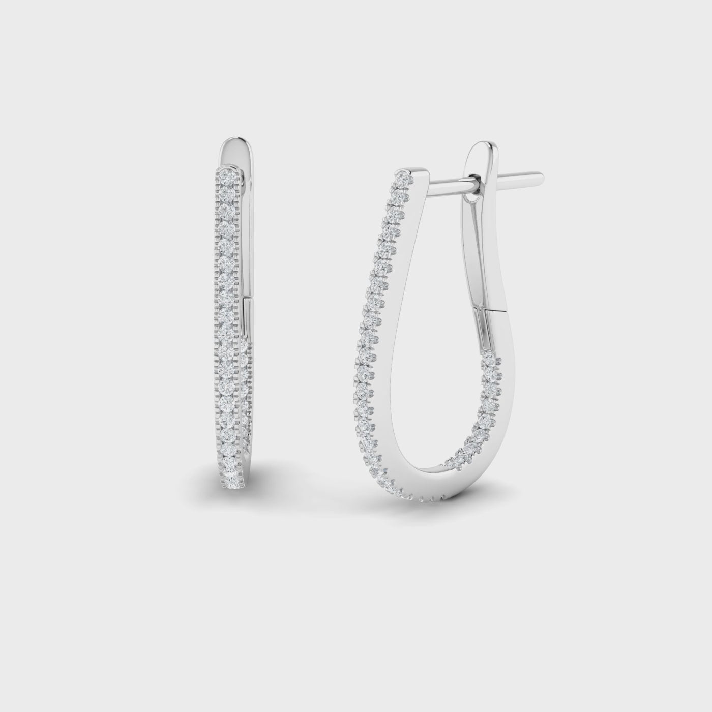 These elegant U-Hoop earrings are crafted from 14K solid white gold and adorned with sparkling natural diamonds. The unique U-shape creates a contemporary and eye-catching look, while the lever back closure ensures secure and comfortable wear. These long hoop earrings are perfect for adding a touch of sophistication to any outfit, making them a versatile addition to your jewelry collection.