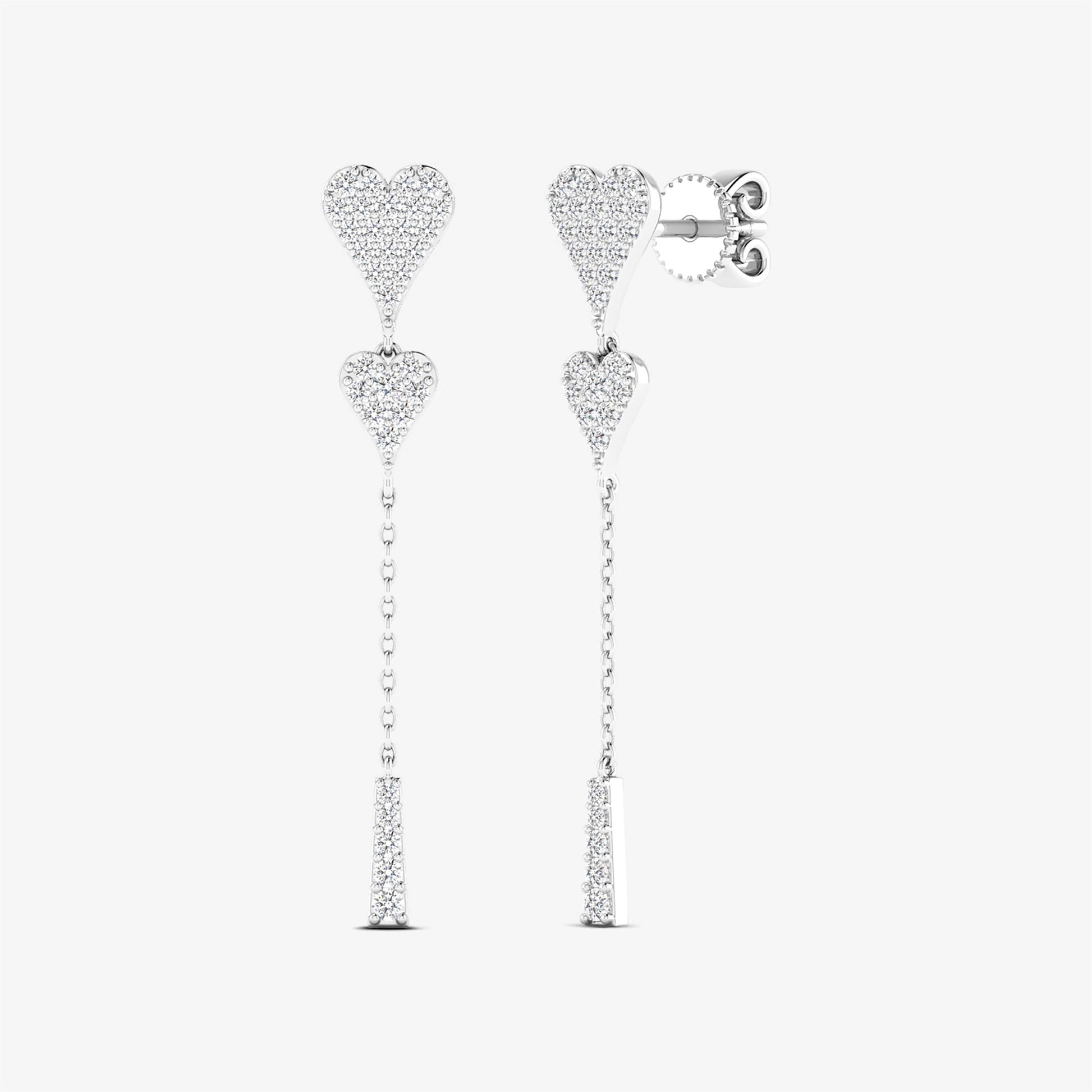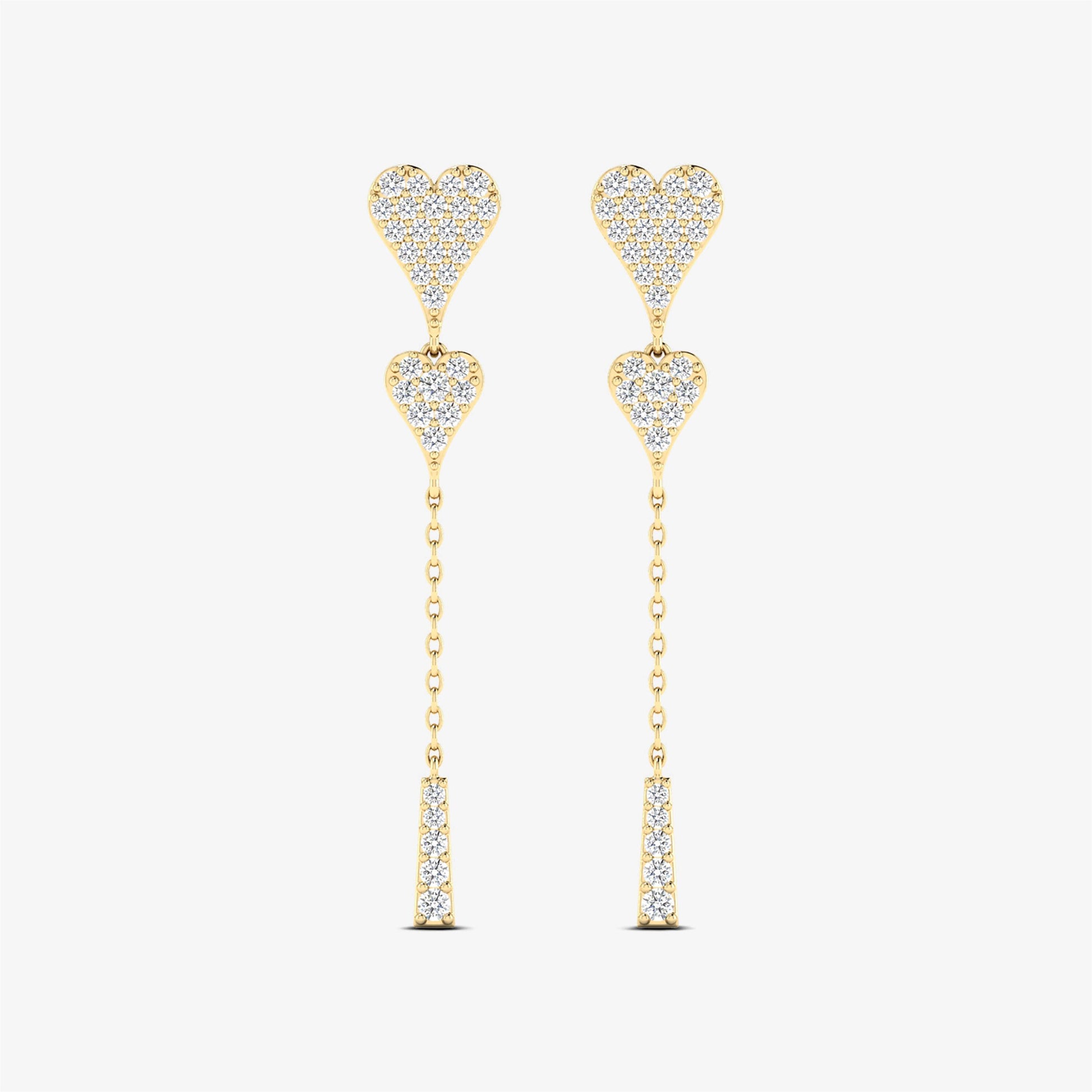 Embrace the beauty of graceful elegance with our Unique Heart Diamond Stud Drop Earrings in 18k Gold. These charming earrings feature natural diamonds set in a solid 18KT gold heart design. These drop earrings are adorned with diamonds carefully set in a prong setting. Perfect as a gift for women, these earrings capture the essence of timeless sophistication and delicate charm.
