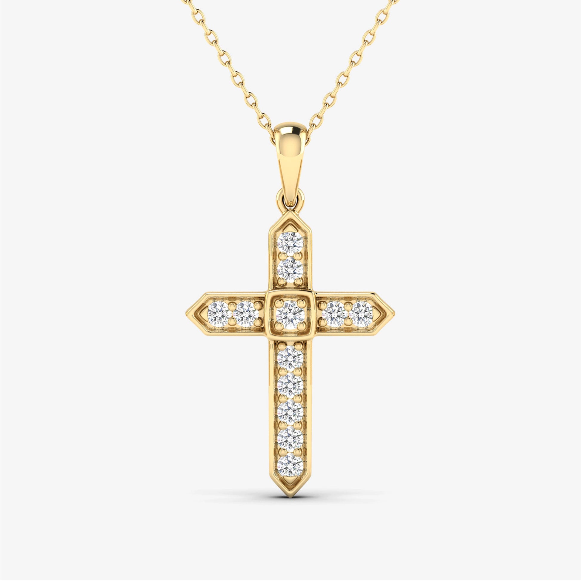 Express your faith with our Cross Religious Pendant Necklace. Crafted from 14K solid gold and adorned with natural diamonds in a prong setting, this unisex cross pendant offers a timeless and elegant design. Paired with an 18" cable chain, itโs a perfect symbol of devotion and style for any occasion.